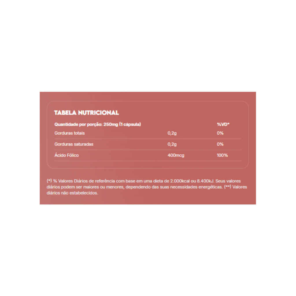 Suplemento alimentar composto de metilfolato. Alta absorção e forma ativa da vitamina B9. Auxilia na eliminação de toxinas do corpo, melhora a cognição, humor e manutenção do sistema imunológico.